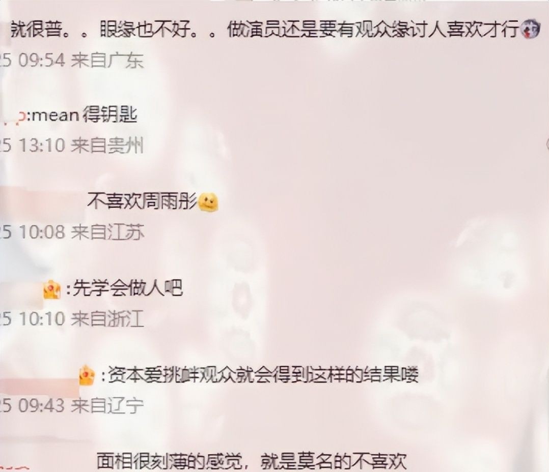 相较其他主演的赞誉如潮,周雨彤的处境显得格外孤立。