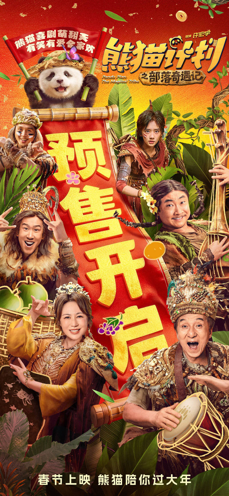 电影《熊猫计划之部落奇遇记》由一场妙趣横生的部落冒险展开,故事内核亦聚焦于家庭与亲情的温暖。今日曝光的“熊猫聚福来”版海报中,巨型熊猫胡胡悠闲侧躺,携手一众“萌”友欢喜亮相。好“萌”友们分别拿着充满年味的道具围绕在熊猫胡胡的周围,成龙手拿挂满福字和灯笼的竹子,马丽手抱金元宝,乔杉捧着玉如意,于洋端着过年必吃的饺子,王影璐提起鞭炮,张子栋举着印有胡胡的特别福字,王成思、柯达、宋木子、冯满、王星等人分别拿着马年生肖头饰、灯笼、春联、糖葫芦、红包等春节标志性元素错落其间,各种细节都洋溢着浓浓的年味。影片精准契合新春佳节合家欢聚的观影需求,融入了冒险、喜剧、奇幻等多元元素,同时加入了“熊猫”这一极具中国特色的文化符号,既满足孩子感受奇幻部落世界的乐趣,也能让成年人尽情欢笑忘记烦恼。在春节这个团圆欢聚的时刻,无论是三代同堂的家庭观影,还是亲朋好友的结伴,相信这个充满想象力的故事,都会给大家带来耳目一新的观影体验。